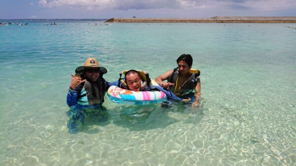 時には電動車いすユーザーと水納島で海水浴を楽しんだり、片足を失った高齢者の最期の搬送をお手伝いしたり、障害を抱えたお子様との外出ドライブを楽しんだり。